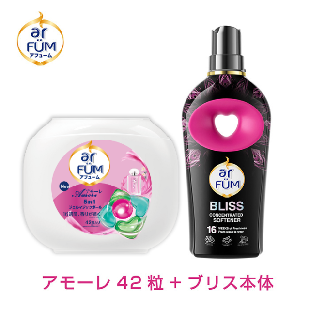 [本体+柔軟剤】アフューム 柔軟剤入り洗剤 セット アモーレ 本体42粒 柔軟剤 ブリス 本体900ml ジェルマジックボール 抗菌 消臭 防臭 ボール型洗剤 洗濯洗剤 セット 王子製薬