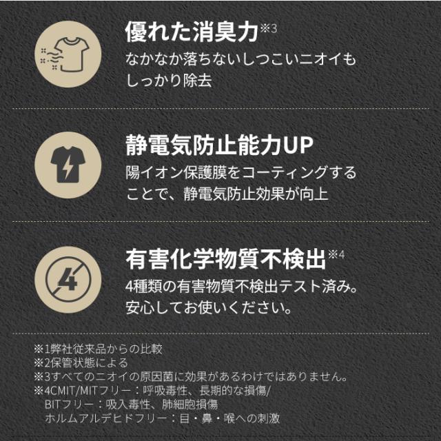 ※繊維の乾燥方法によって香りの持続時間が異なる場合があります。