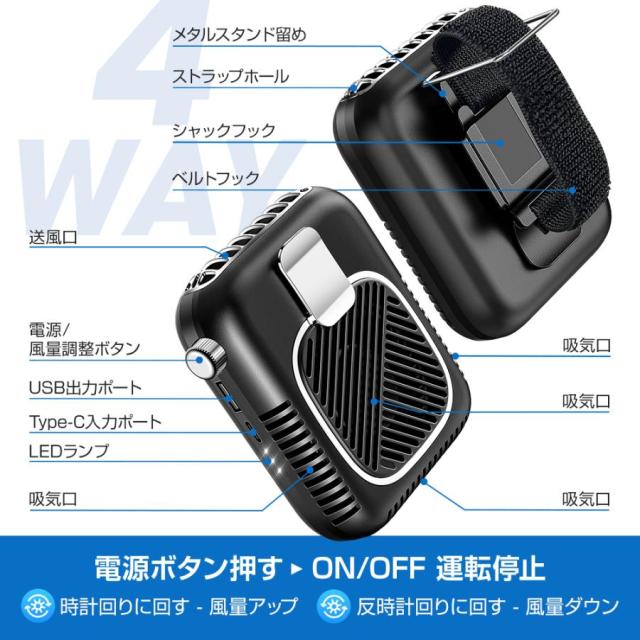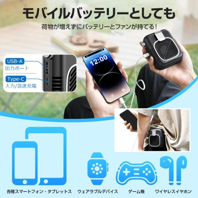 扇風機 腰かけ ハンディファン 卓上扇風機 携帯扇風機 首かけ 8000mAh 静音 卓上 コンパクト おしゃれ モバイルバッテリー 大容量 長持ち