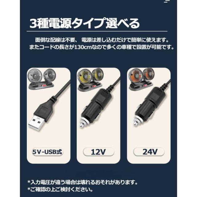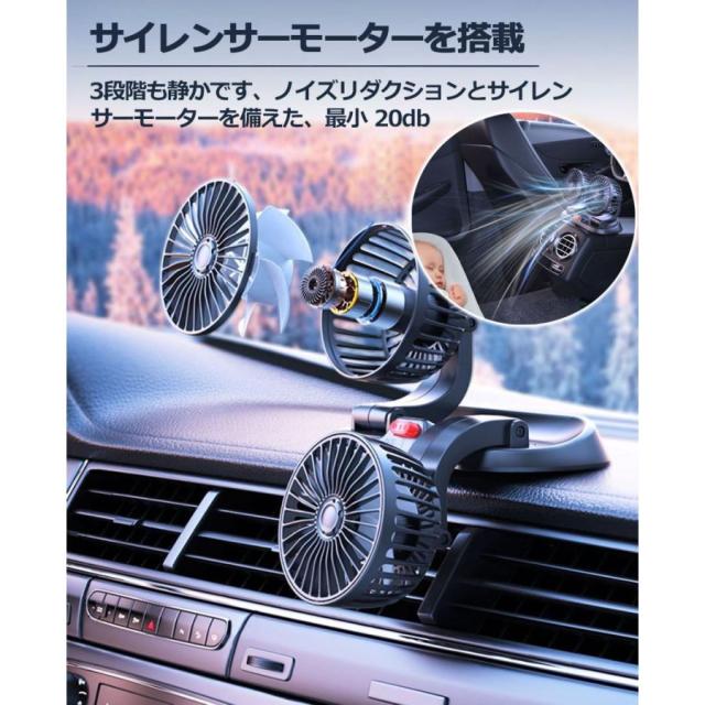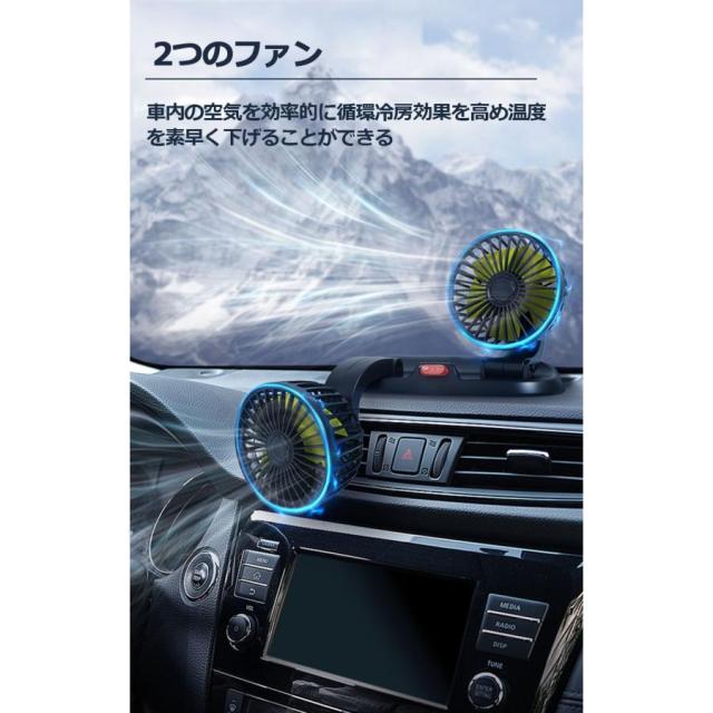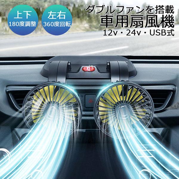 扇風機 最新発売 車載扇風機 車用扇風機 車用 360度回転 5枚羽根 USB 12v/24v仕様 ダブルフ 熱対策 電動ファン 限定セール 低騒音 風速風量調節可能 小型