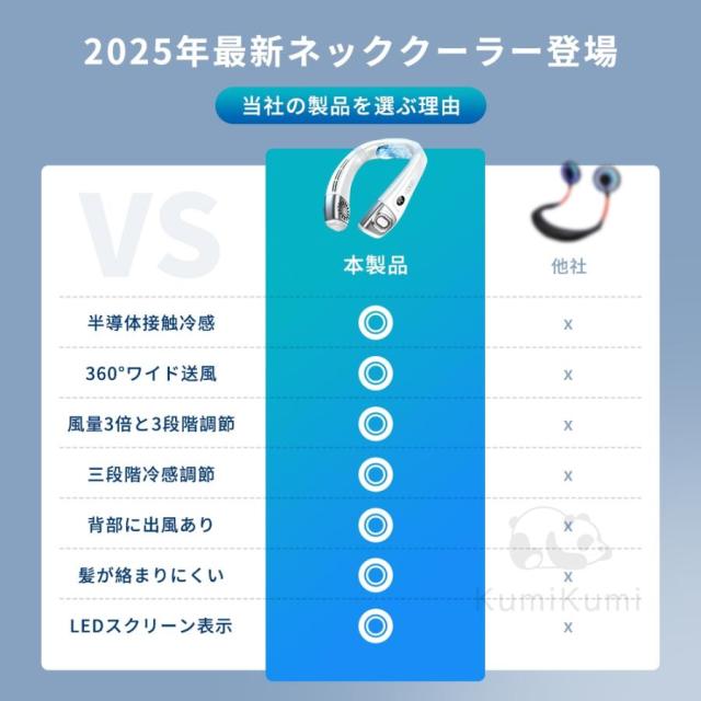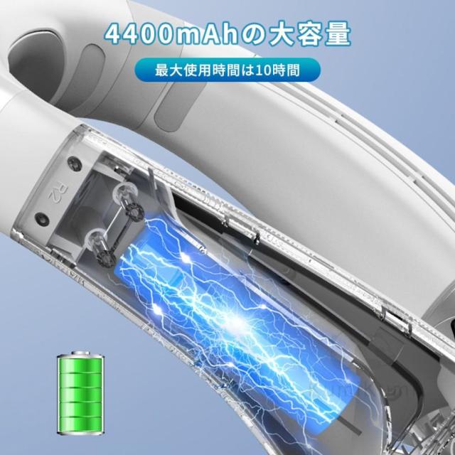 ネックファン は大容量バッテリーを搭載しており、一度の充電で長時間の使用が可能。