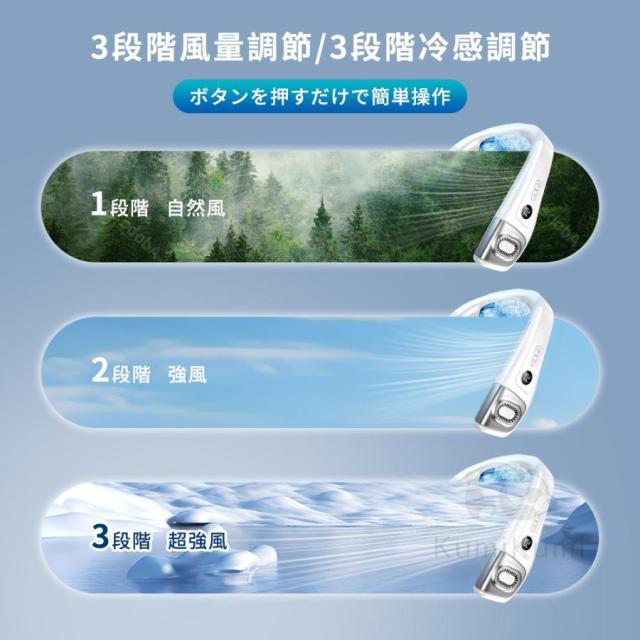 首掛け扇風機 は、強力なモーターを搭載し、超大風量を提供。3段階冷感調節。首掛け扇風機のアップグレード版は冷却面積が広くなり、暑い夏の日でも涼しく過ごせます。直接冷やすことで、より効果的な冷却が可能です!