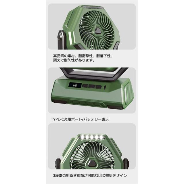 「自動首振り&TYPE-C」 最新発売 充電式 扇風機 卓上 アウトドア キャンプ 扇風機 強力 LEDライト 6000mAh 長持ち 限定セール コードレス 防災 睡眠