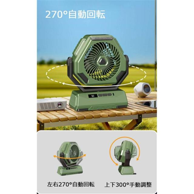 「自動首振り&TYPE-C」 充電式 扇風機 卓上 アウトドア キャンプ 扇風機 強力 LEDライト 6000mAh 長持ち コードレス 防災 睡眠