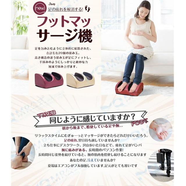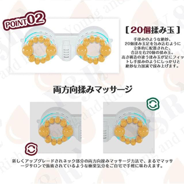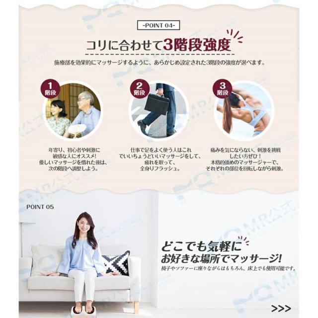3WAY使い方/20個揉み玉/温熱ヒーター機能/コリに合わせた3段階強度レベル/じんわり温める/足裏、ふくらはぎ、腕などをマッサージする/手揉みのような絶妙/足を包み込むように立体的に配置される/両方向揉めマッサージ/色々なシーンで活躍/毎日の疲れを癒す/収納ラクラク/軽量設計/操作簡単/静音設計