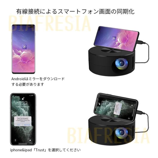 プロジェクター 本体 小型 スマホ タブレット 家庭用 投影機 軽量 スマホ iPhone Android対応 最大100インチ投影 USB給電式 リモコン付 モバイルプロジェクター