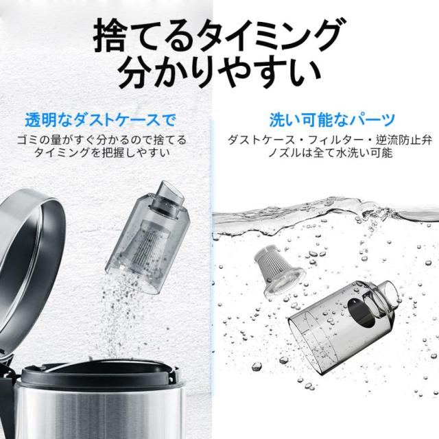 フィルター、ダストケース・逆流防止弁・ノズルは全て水洗い可能。