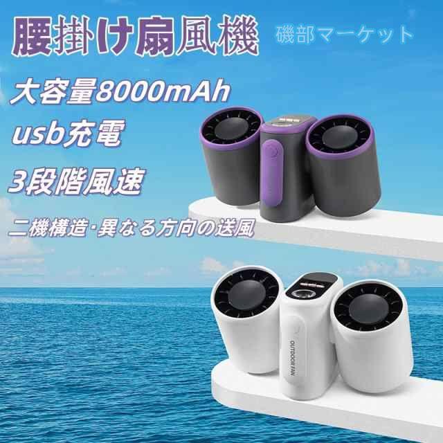 「二機構造・異なる方向の送風」 腰掛け扇風機 8000mAh大容量 腰ベルトファン 首掛け扇風機 ベルトファン クリップファン ウエストクーラー 卓上扇風機 usb充電&逆充電 風速3段階 静音 屋外作業