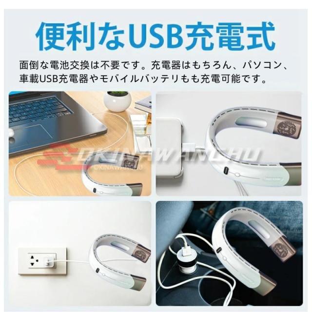 2025最新型 ネッククーラー 首かけ扇風機 首掛け ネックファン 長時間 静音 大型冷却プレート付 Type-C充電式 羽根なし ハンズフリー 充電式 軽量