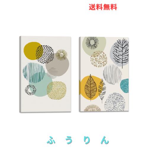 北欧 絵画 幾何 ライン 抽象 2枚 アートパネル 玄関 ポスター 装飾画 飾り絵 壁掛け 壁飾 木枠付きの完成品 (40x60cm x2)