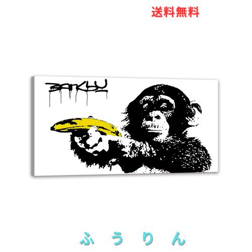 バンクシー 猿 アートパネル 大型 banksy ポスター モノクロ 絵画 現代 インテリア 壁掛け 部屋飾り お風呂 玄関 木枠付きの完成品 (40x8