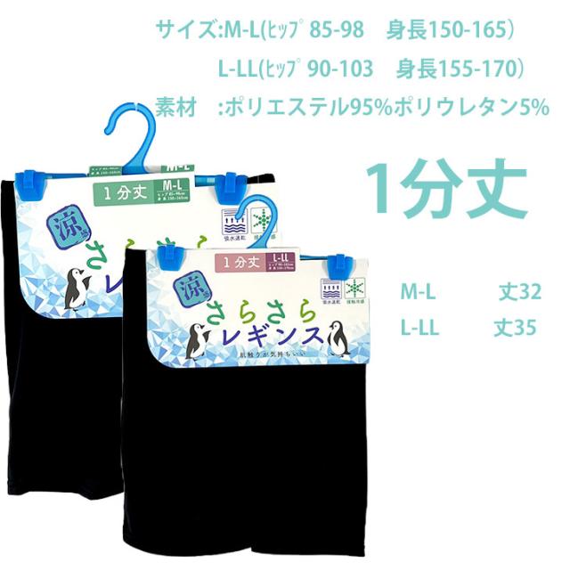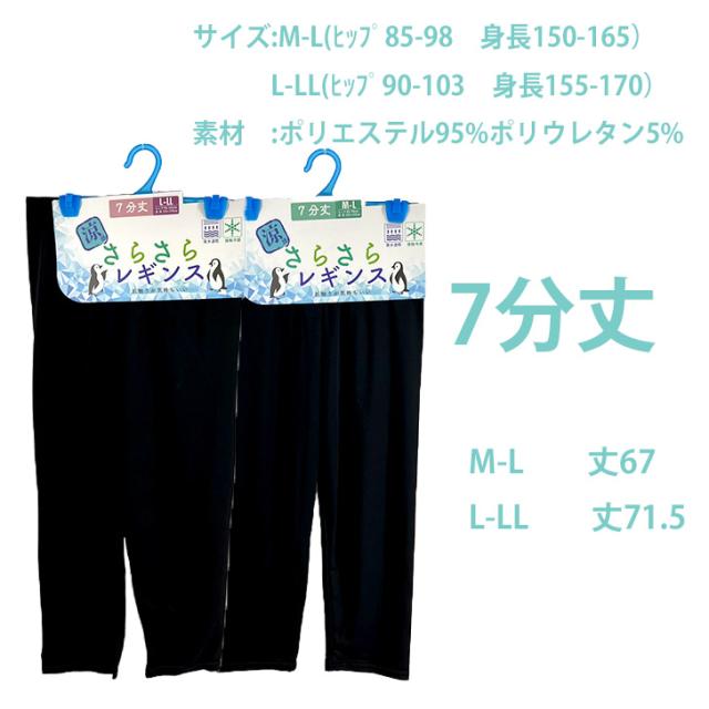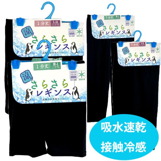 さらさらレディースレギンス接触冷感 吸水速乾 ブラック 1分丈 7分丈