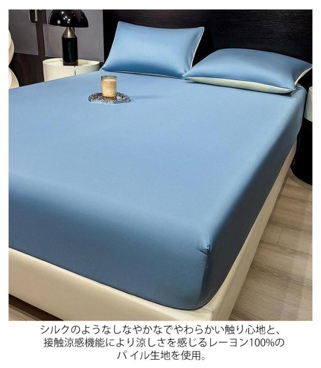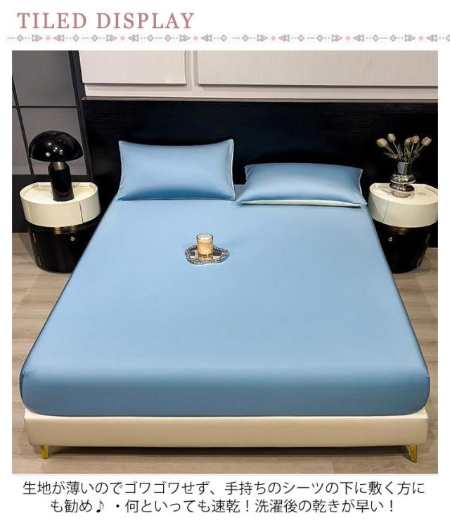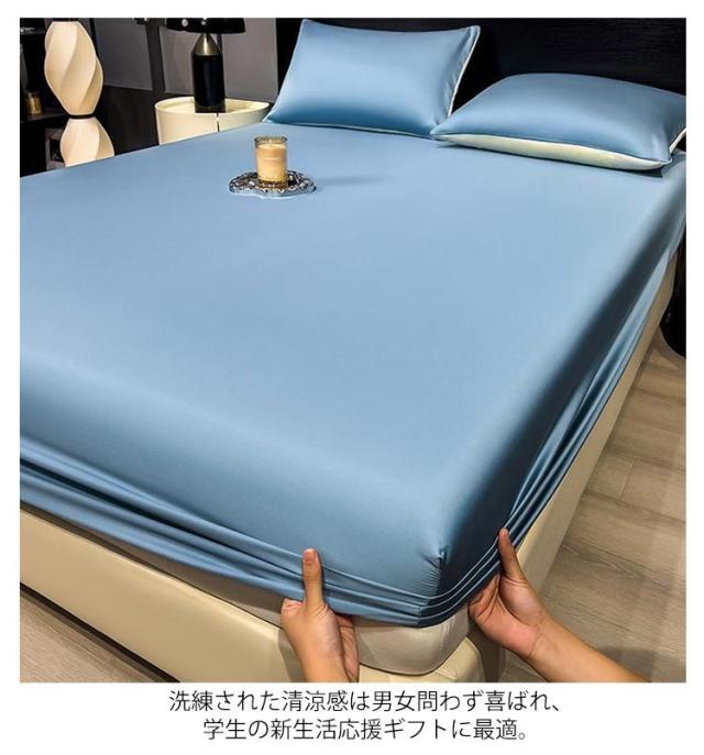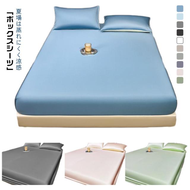 ベッドシーツ ベッドカバー 冷感 セミダブル 夏用 サテン ツルツル シルクみたい光沢 ボックスシーツ ダブル マットレスカバー 素肌にやさしい 吸水速乾 洗える 高密度生地 おしゃれ 北欧 夏