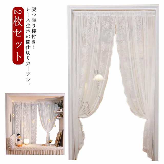 間仕切りカーテン 突っ張り棒付き 暖簾 目隠し レースカーテン 仕切り 2枚セット 遮光 おしゃれ カーテン 仕切りカーテン かわいい カフェカーテン ロング 玄関 部屋を仕切る 取り付け簡単 蚊よけ 北欧