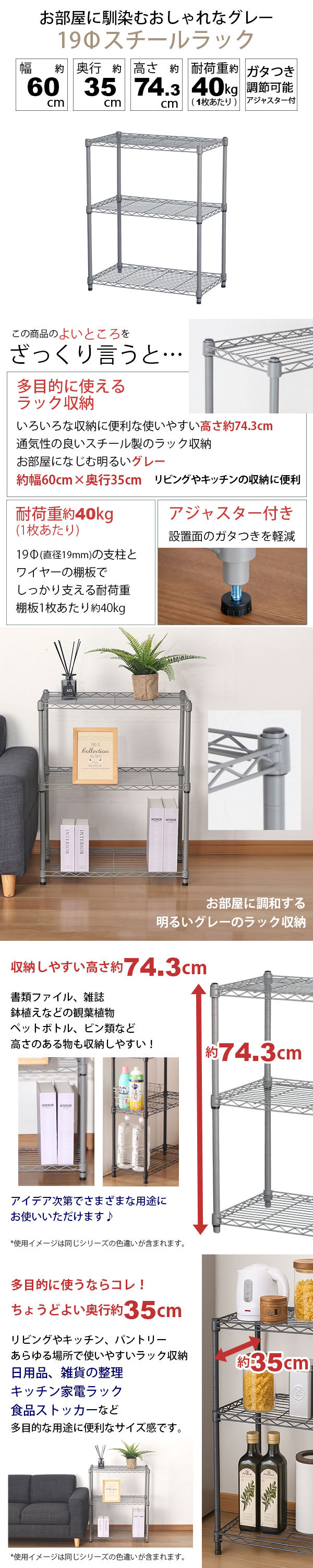 使いやすい奥行&高さ お部屋に馴染むおしゃれなグレー 19Φスチールラック の説明