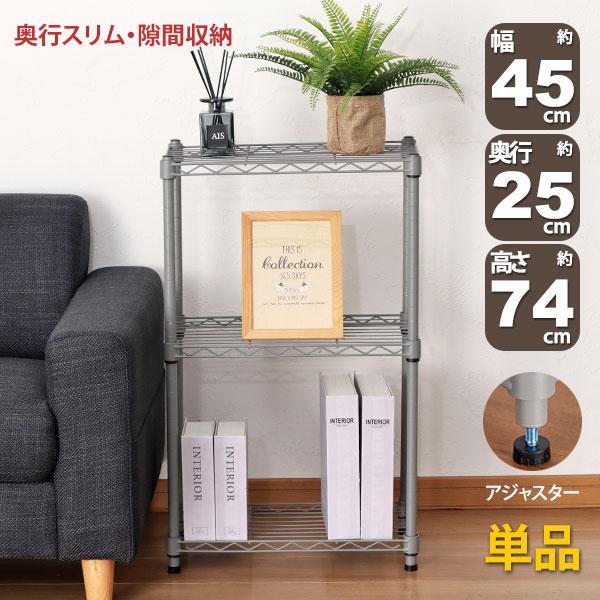 スチールラック 3段 スリム 幅75cm 奥行35cm 高さ74.3cm ダークグレー (約75×35x75cm) アジャスター付き おしゃれ くすみカラー メタル製ラック シェルフ 省スペース キッチンラック 隙間収納 頑丈 スリムラック ベッドサイドラック ソファ横 コンパクト 単品 AAS-7301