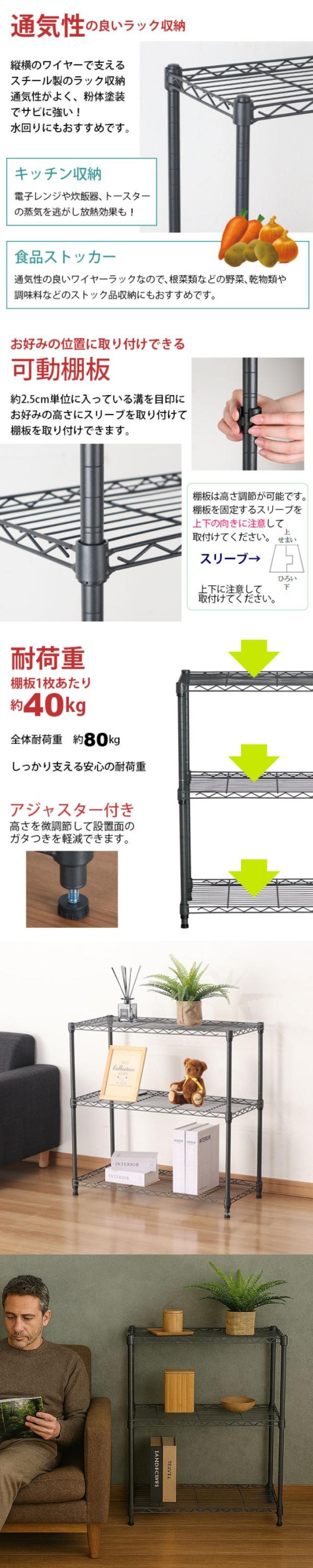 実用性が高い 耐久性 限られたスペースでもしっかり収納 モノトーンインテリア インダストリアルテイスト 汚れが目立ちにくい 落ち着いた空間を演出 自由にレイアウト可能 すき間 キッチンカウンター 棚上 様々な用途に使える ミニラック 子ども部屋 押入れ収納 高い収納力 棚板3枚 簡単に組み立てられる ガタ付き軽減 背板が無い 配線しやすい キッチン家電 収納