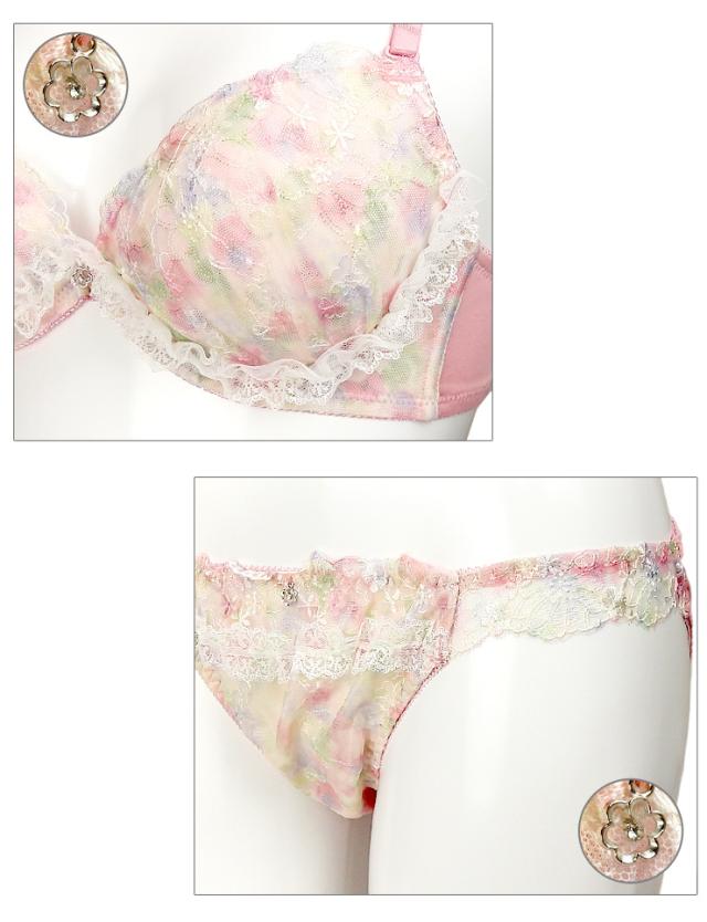 【大きいサイズ】水彩花柄レース ブラジャー ショーツ セット 下着(J-1270) ブルー ピンク G H I 70 75 80 85 90 bs2428