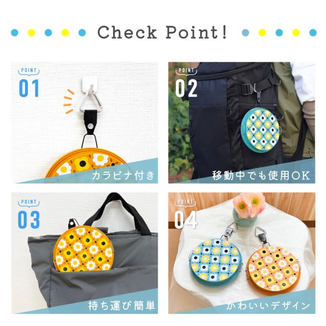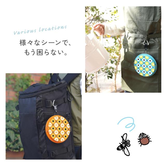 【Point.1】ホルダーにカラビナが付いているので、服やリュックなどにセット可能。