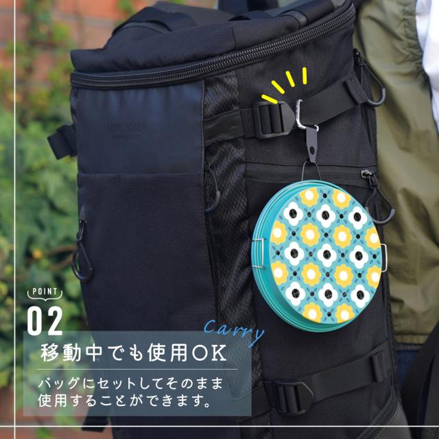 【Point.2】バッグなどにセットしてそのまま使用できるので、移動中でも使用OK!