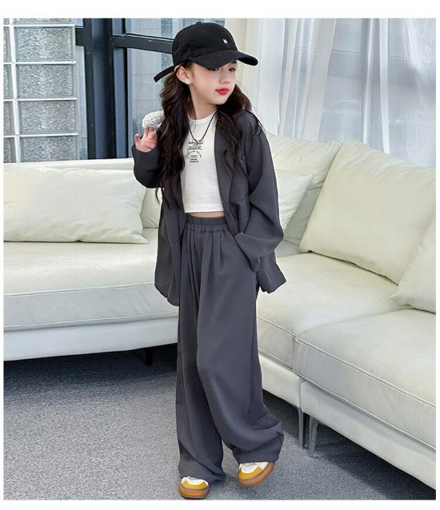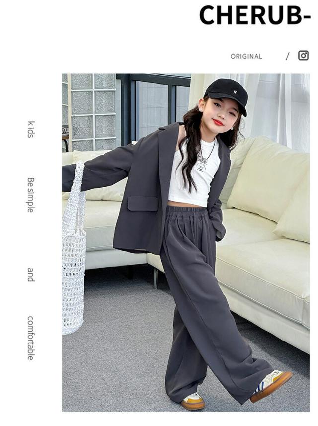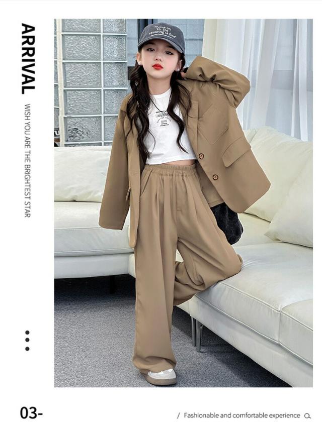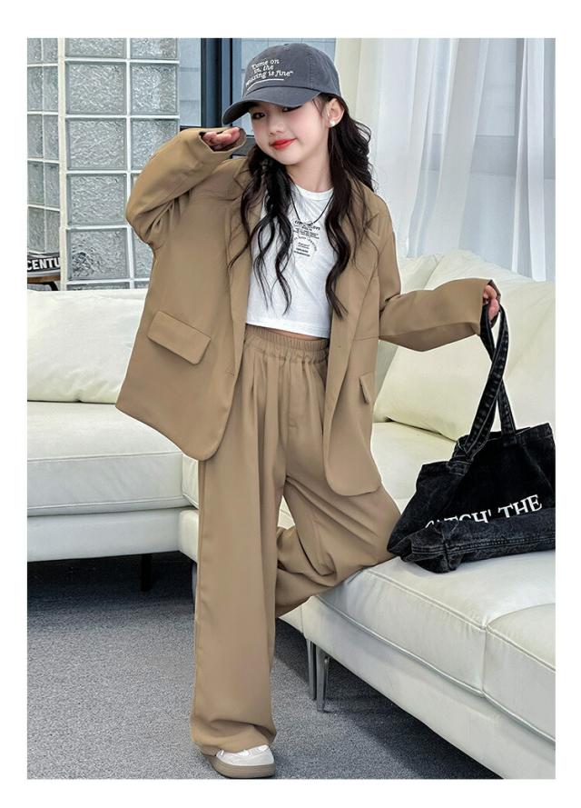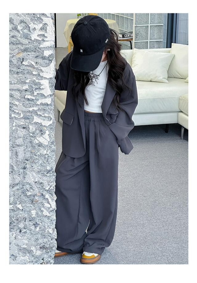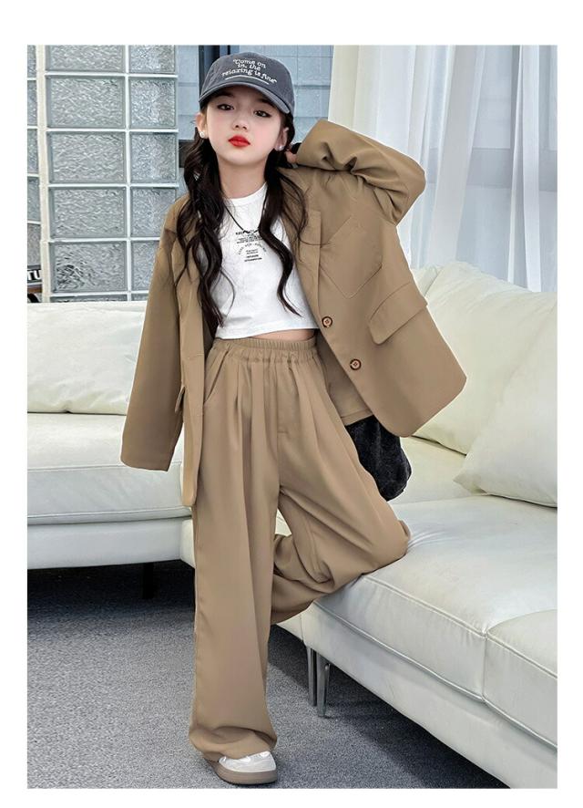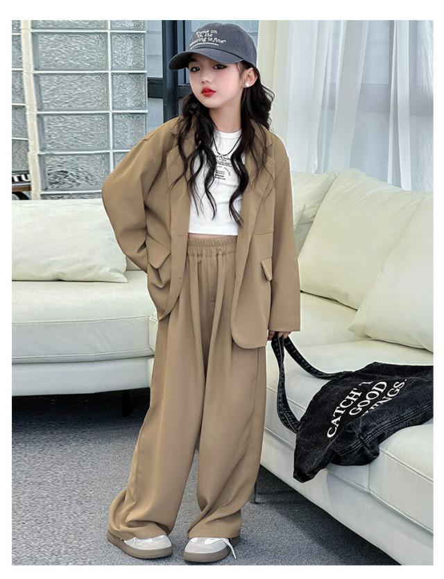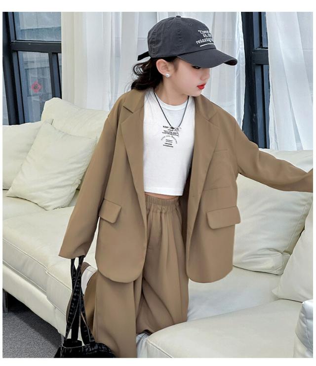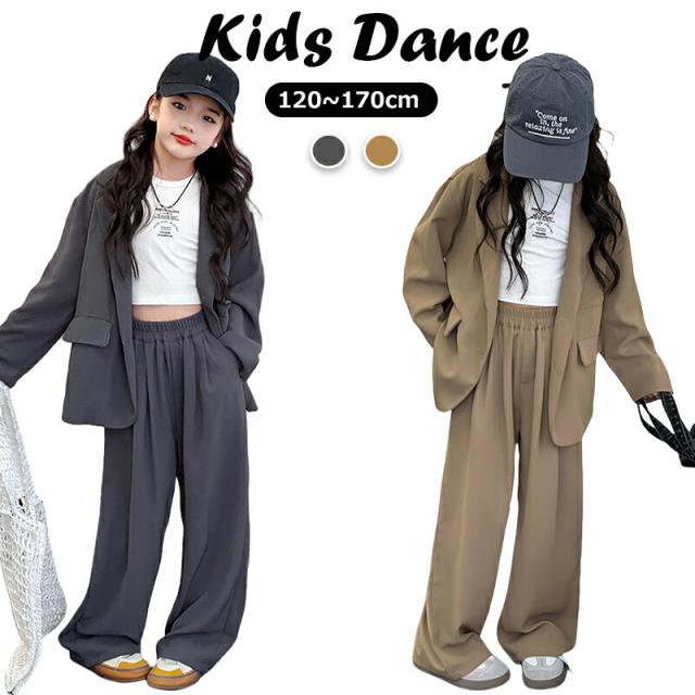ブラウン グレー スーツ セットアップ キッズ ダンス衣装 女の子 子供服 ヒップホップ ジャケット ジャズ 長袖 トップス 韓国 ステージ衣装 演出服 おしゃれ 大きいサイズ hip 発表会