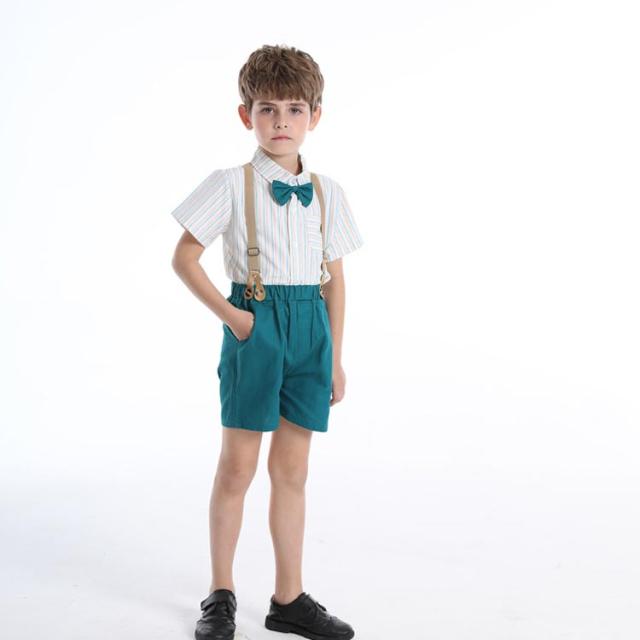 70 半ズボン 半袖 結婚式 フォーマル 蝶ネクタイ サスペンダー ハーフパンツ 4点セット ベビー スーツ 半袖ワイシャツ シャツ 子供服 130 90 発表会 涼しい 小学生 100 110 80