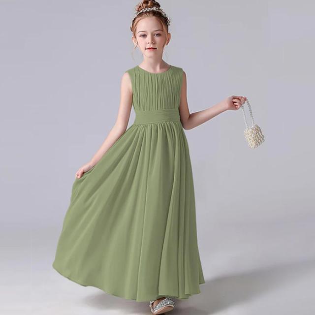 ふわりと優雅なプリーツトップAラインロング子供ドレス。