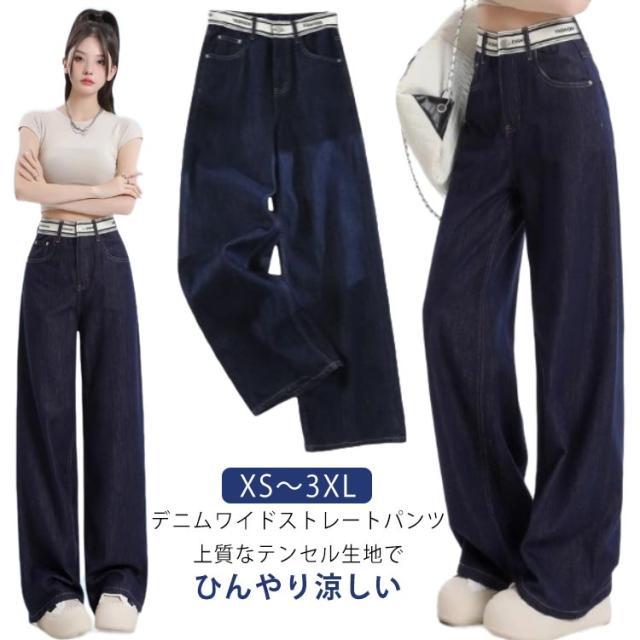 XS-3XL ジーパン デニムワイドパンツ ワイドパンツ ひんやり 冷感 レディース 薄手 大きいサイズ 全7色 夏 ボトムス デニム ワイド ストレート ハイウェスト 細見え パンツ デニムパンツ