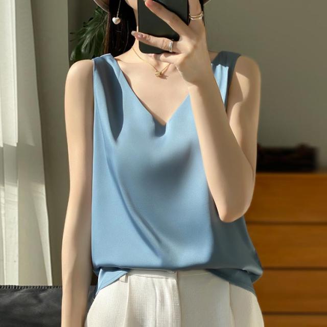 光沢感のある大人カジュアルな「シルク」タンクトップ 選べる8色 M-4XL