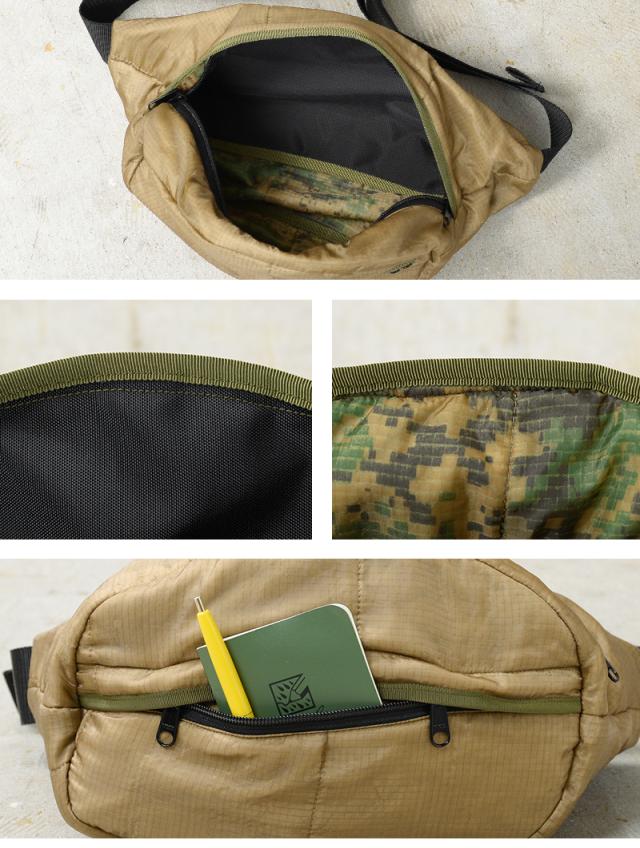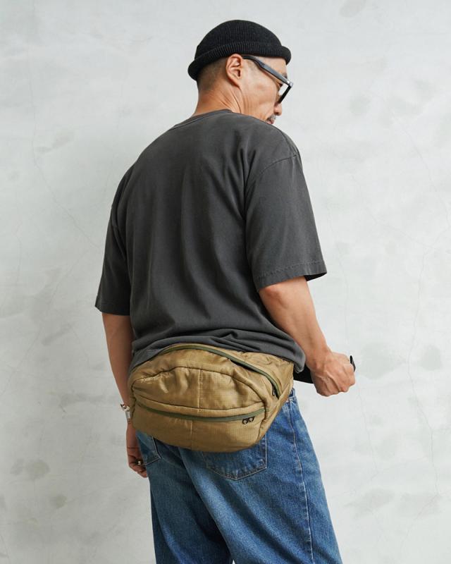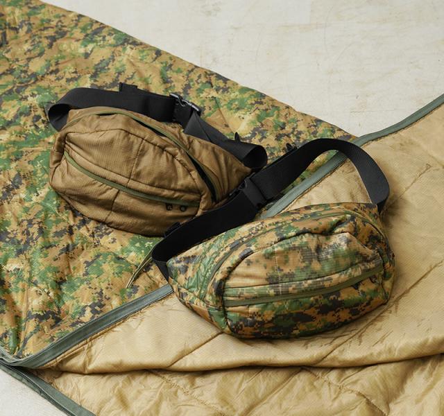 WAIPER.inc 実物 米軍 ポンチョライナー リメイク ボディバッグ / ヒップパック COYOTE 日本製【T】【Cx】|メンズファッション ミリタリー スリングバッグ ウエストバッグ キルティング ナイロン