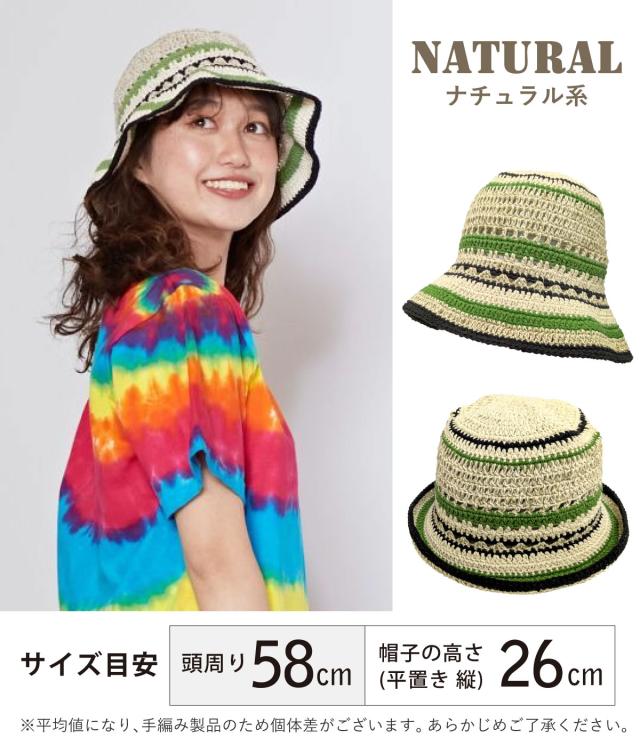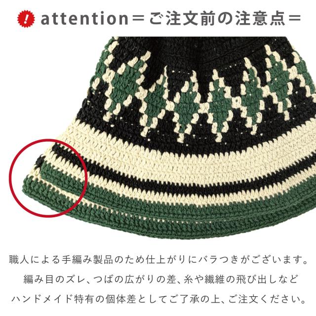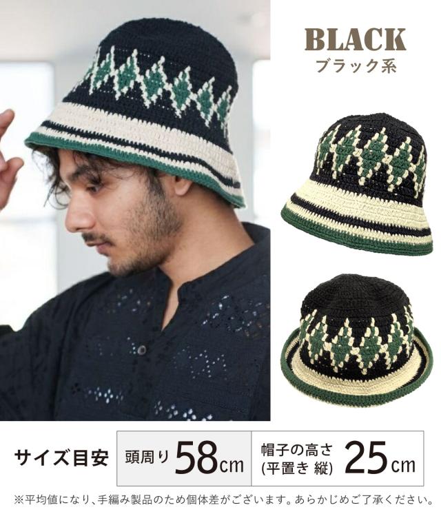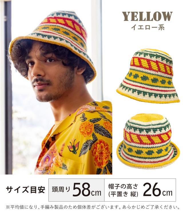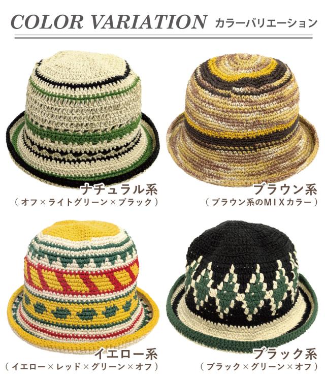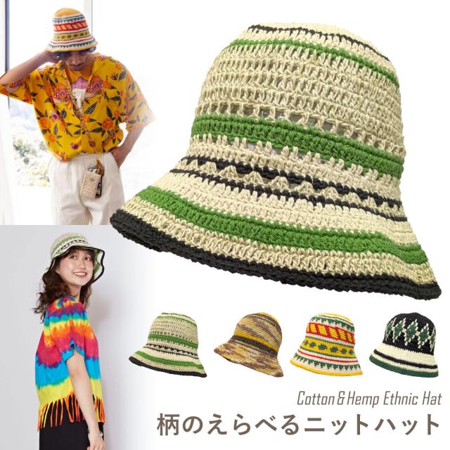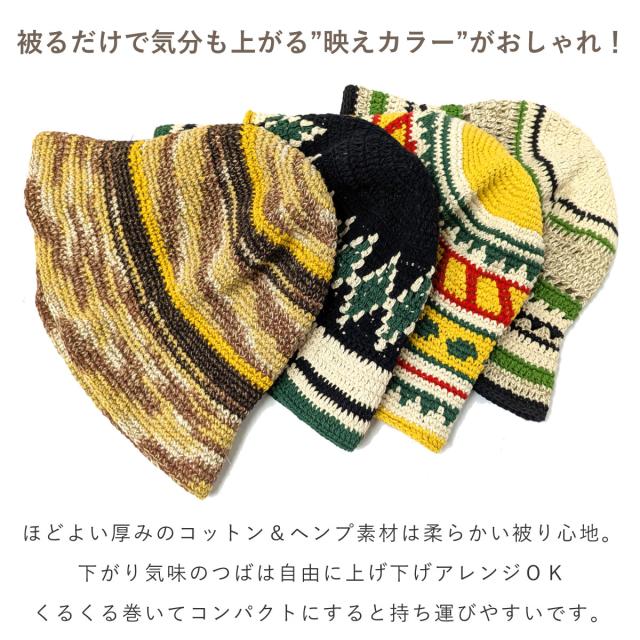 コットン ヘンプ 手編み ニットハット 柄がえらべる 帽子 深め バケットハット クロシェ チャイハネ 個性的 綿 麻 バケハ knit-1730 サマーハット 春夏 メンズ 帽子 レディース 58cm 59cm エスニック フェス プレゼントメール便送料無料