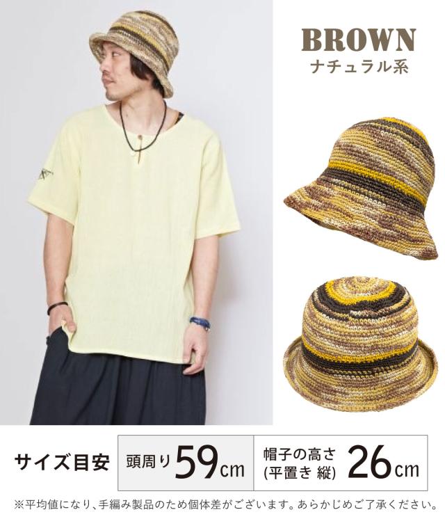 ブラウン系頭周り 約59cm / 帽子の高さ(平置き 縦) 約26cm 素材 綿50%・ヘンプ50%