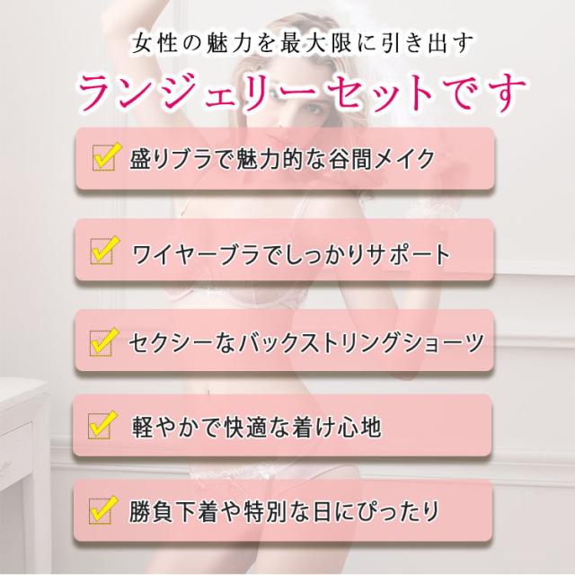 商品名 | セクシーランジェリー ブラ&ショーツセット 盛りブラ ストリングブラ ワイヤーブラ バックストリング 魅せる谷間 勝負下着 レディース 下着セット |