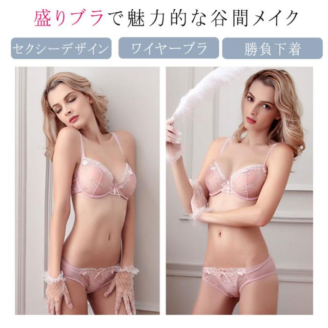 セクシーランジェリー ブラ&ショーツセット 盛りブラ ストリングブラ ワイヤーブラ バックストリング 魅せる谷間 勝負下着 レディース 下着セット