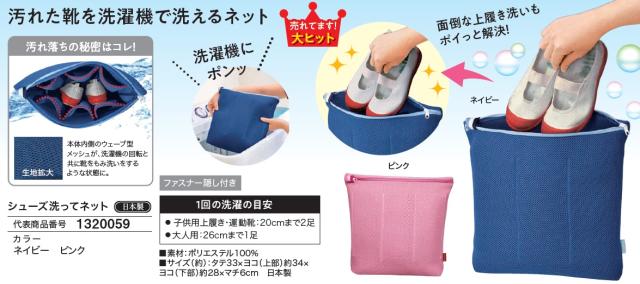 日本製 シューズ洗ってネット 全2色 洗濯ネット 靴 洗い ネット 靴が洗える 上履き 洗濯できる シューズ ネット くつ ネイビー ピンク dz p27463