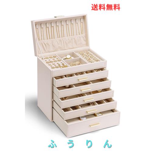 【6層のジュエリーボックス】その大きなサイズはもちろん、内部構造も極めて充実しています全6段の構成で、以下のような収納スペースを完備しています:15コマ-リングとイヤリングの専用スペース、5コマ-ネックレスの専用スペース、6コマ-ブレスレットの専用スペース、腕時計の専用スペースこの細かな分類収納設計により、あなたの様々なジュエリーを秩序立てて保管することができます使いたい時すぐに取り出せる便利さも魅力です