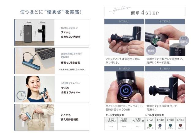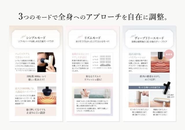 | 振動モード | シンプル・リズム・ディープリリースの3モード搭載 |