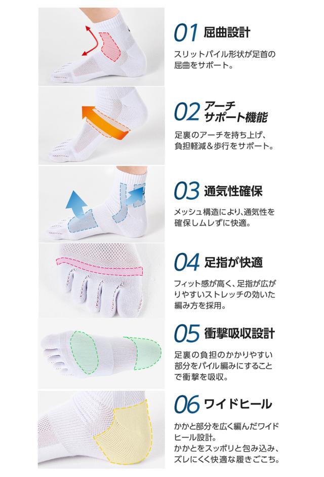 足裏アーチサポート機能&パイル編みによる衝撃吸収設計で運動時の負担を軽減。