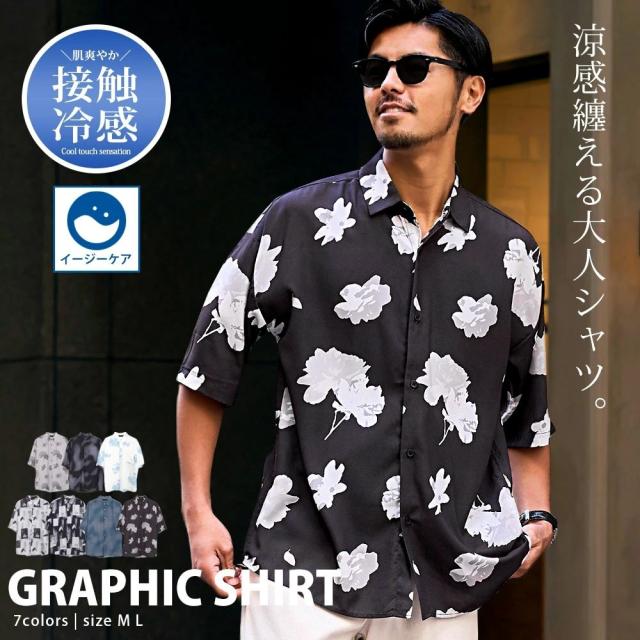 シャツ メンズ 半袖 ブランド おしゃれ 半袖シャツ 白シャツ 接触冷感 涼しい ひんやり 大きいサイズ ビッグシルエット ゆったり 総柄 花柄 グラフィック ドレープ 大人 上品 カジュアル キレイめ 大人カジュアル 春 春服 夏 夏服 春夏 M L ユニセックス 男 男性 大人 カジュアル モード モード系 ファッション 男性 男 父の日 父の日ギフト 父の日プレゼント 20代 30代 40代 メンズファッション 東京 プレゼント 誕生日 記念日 贈り物 ギフト配送について