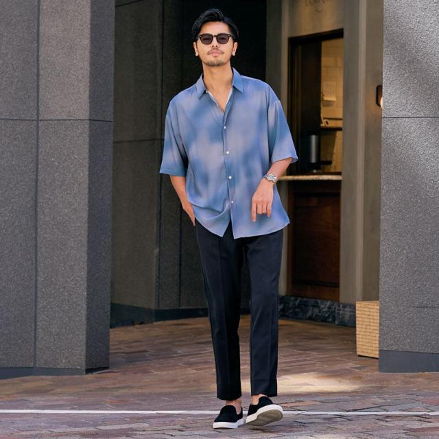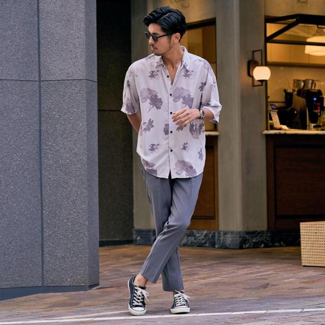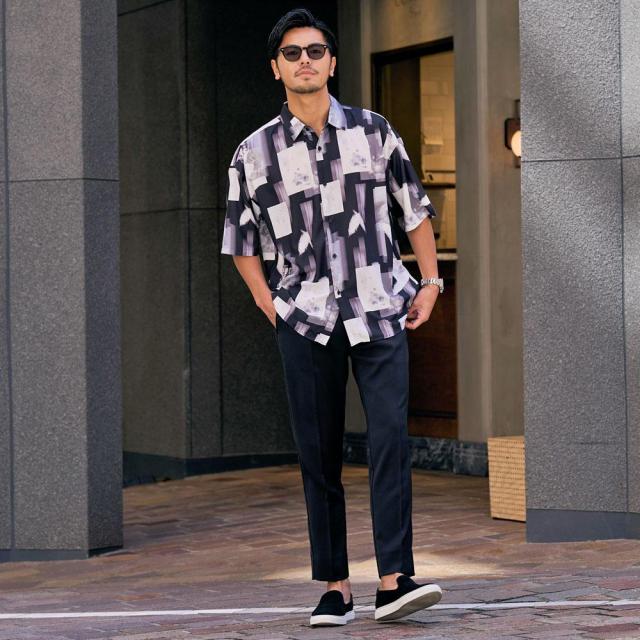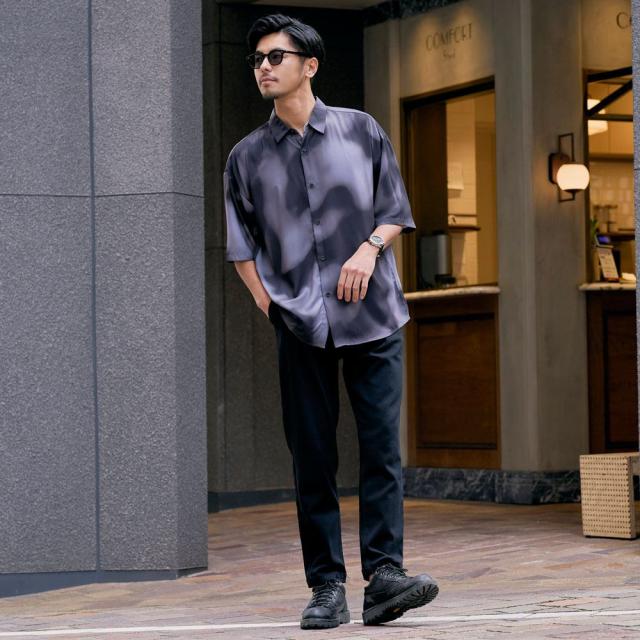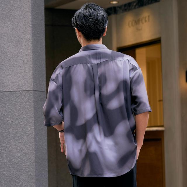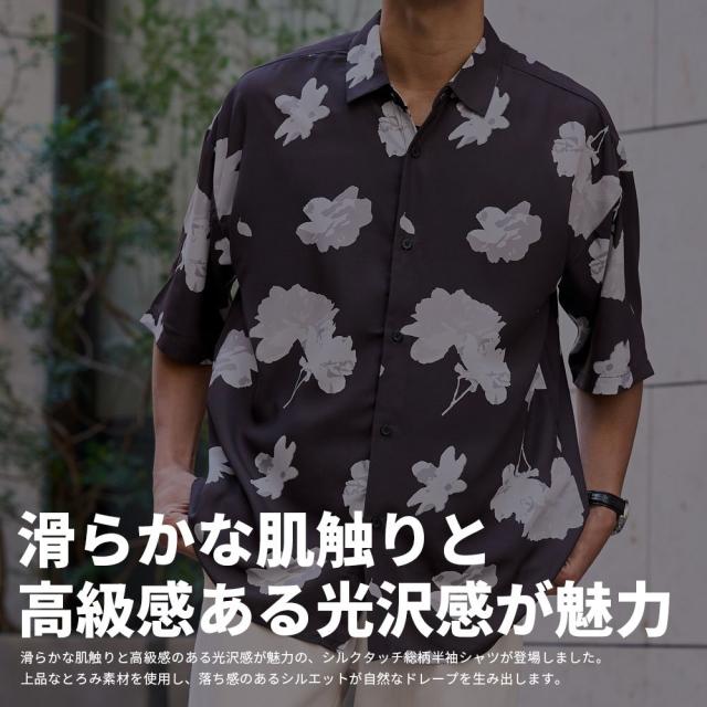 滑らかな肌触りと高級感のある光沢感が魅力の、シルクタッチ総柄半袖シャツが登場しました。