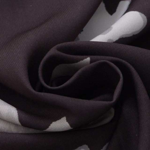 大胆な総柄デザインがモードな雰囲気を演出し、スタイリングの主役として存在感を放ちます。