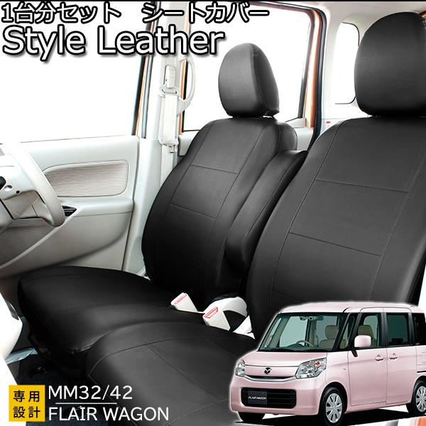 フレアワゴン カスタムスタイル シートカバー MM32 MM42 スタイルレザー 送料無料 ブラック レザー調 防水 フェリスヴィータ