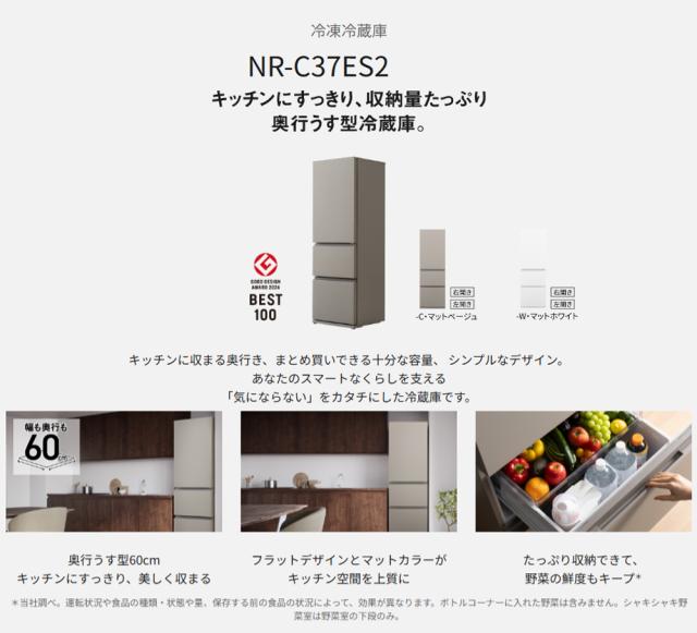 冷蔵庫 右開き3ドア 365L ESタイプ NR-C37ES2 C Aエリア限定配送 標準配送設置無料