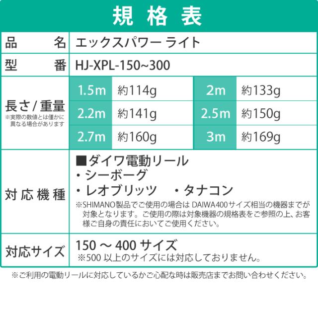 【公式】HEMAJUN (ヘマジュン) エックスパワーライト ワニ口仕様 2.2m 超軽量 ダイワ電動リールと互換性あり 150〜400サイズ対応 ワニ口仕様バッテリー対応
