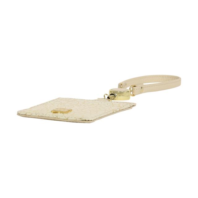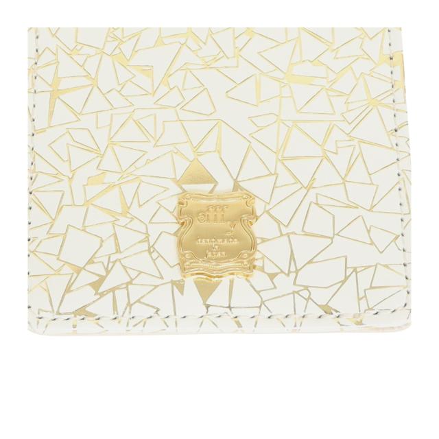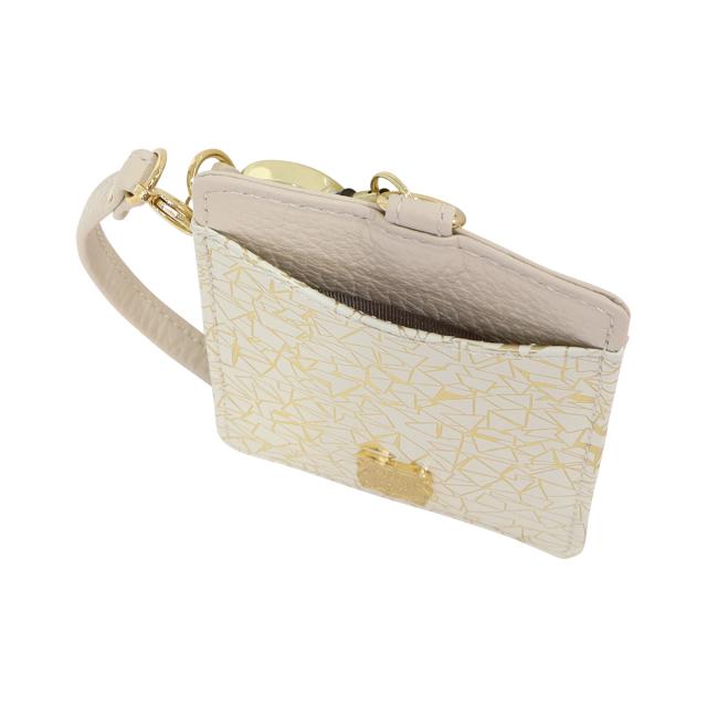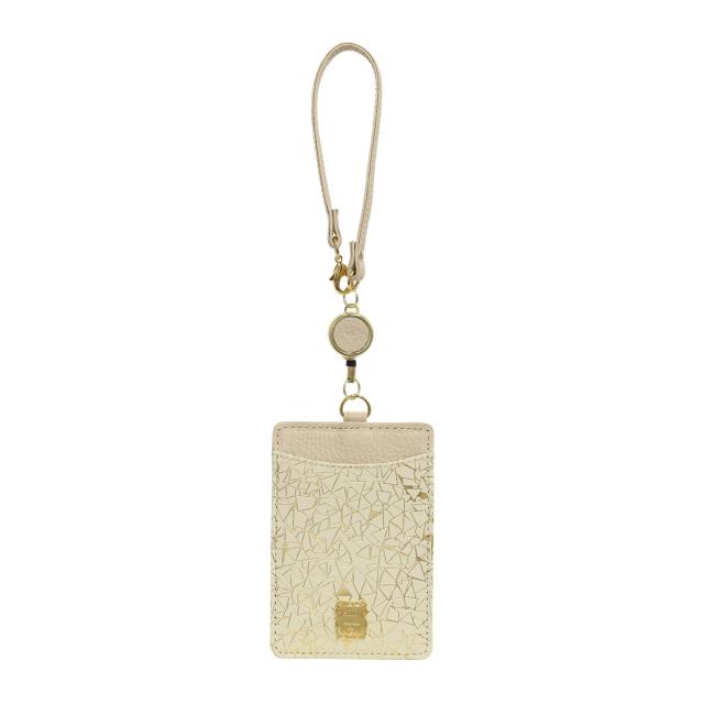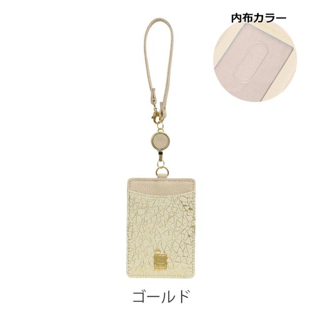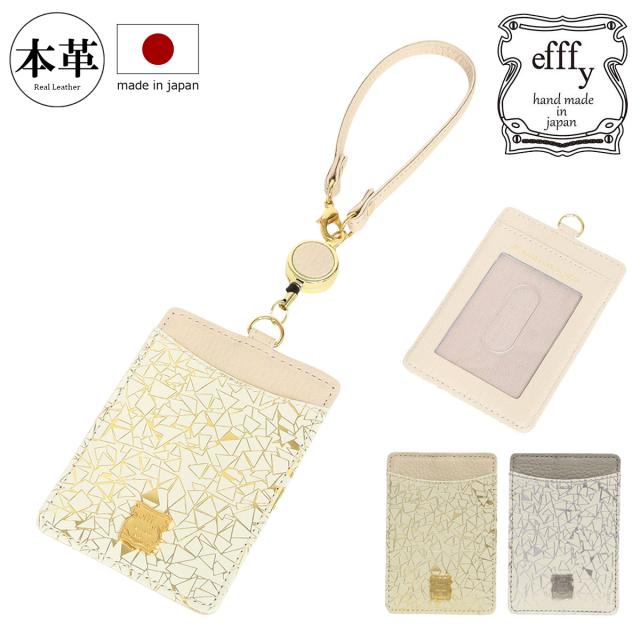【レビュー投稿で+5%還元】パスケース 本革 日本製 レディース エフィーPD3-038 efffy | カードケース 牛革 リール付き 幾何学 プリント ゴールド シルバー 三角 縦型