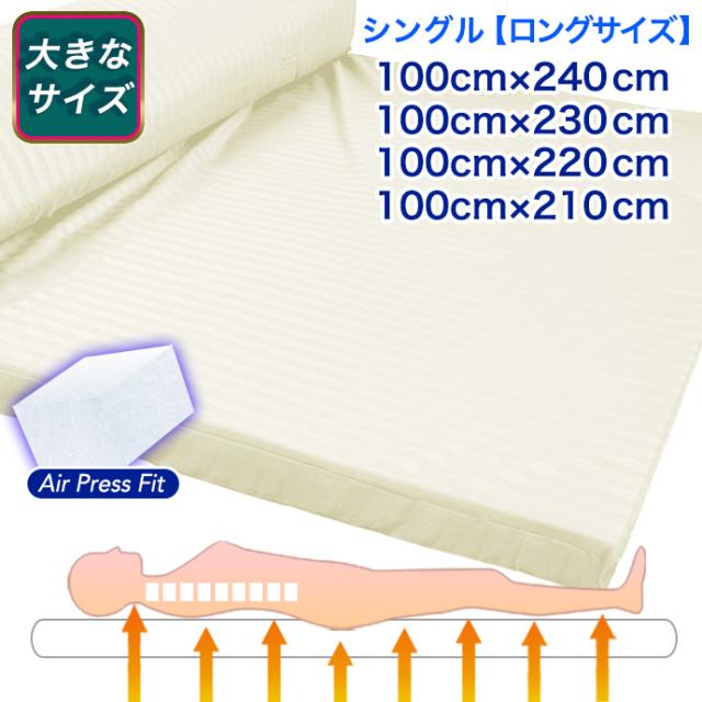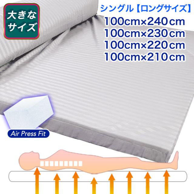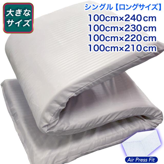 ロングサイズ 敷布団 シングル ロング 日本製 敷き布団 100cm × 210 220 230 240cm 大きなサイズ エアープレス フィット 固反発 三つ折り 収納 オーバーレイ ビックサイズ 少し 硬め シングル ロング 厚さ約 5cm 国産