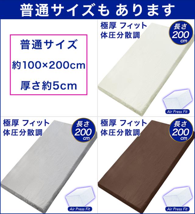 【エアープレスマット】Air Press Mat フィット シングル :サイズ・カラー 約100×240cm 厚さ約5cm アイボリー・ グレー 約100×230cm 厚さ約5cm アイボリー・ グレー 約100×220cm 厚さ約5cm アイボリー・ グレー 約100×210cm 厚さ約5cm アイボリー・ グレー 約100×200cm 厚さ約5cm アイボリー・ グレー・ ブラウン ※ 【全サイズ製品許容範囲±5%】 |