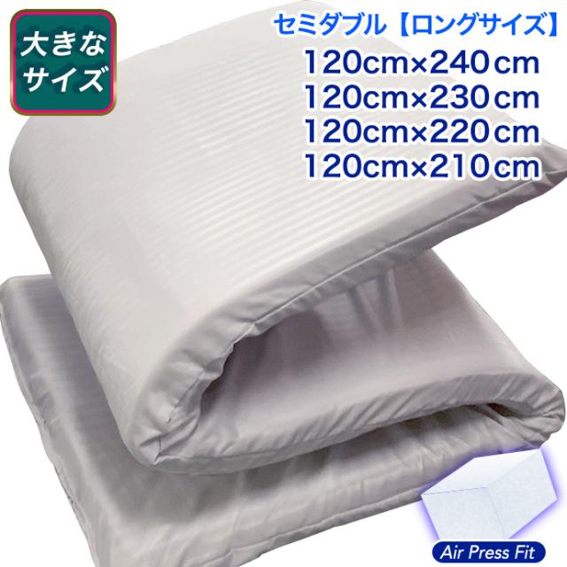 ロングサイズ 敷布団 セミダブル ロング 日本製 敷き布団 120cm × 210 220 230 240cm 大きなサイズ エアープレス フィット 固反発 三つ折り 収納 オーバーレイ ビックサイズ 少し 硬め セミダブル ロング 厚さ約 5cm 国産