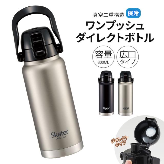 \今だけ10%OFF/ ステンレスボトル ワンプッシュ ダイレクトボトル 水筒 800ml 大容量 大きめ 保冷 直飲み ハンドル付き 広口 真空断熱 軽量 マイボトル 水分補給 男性 女性 子供 部活 メンズ レディース スポーツ ウォーキング 黒 シルバー STD8H