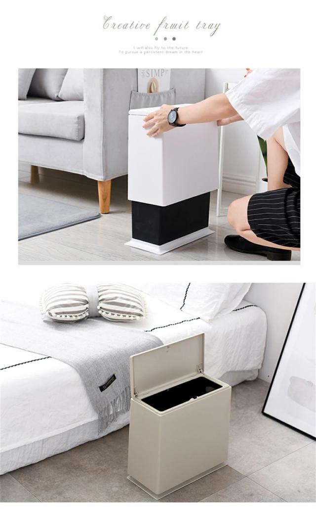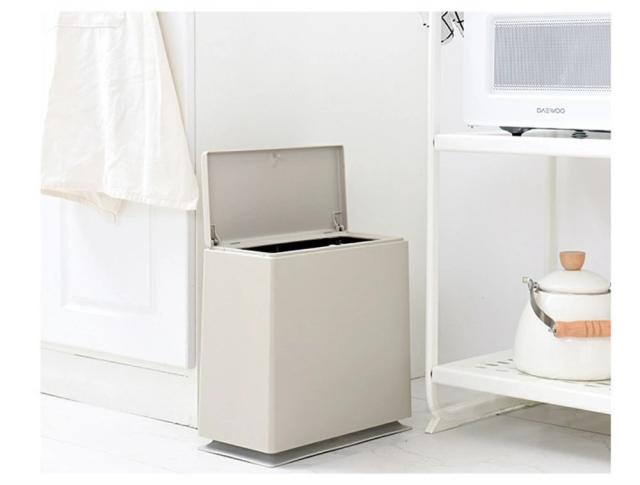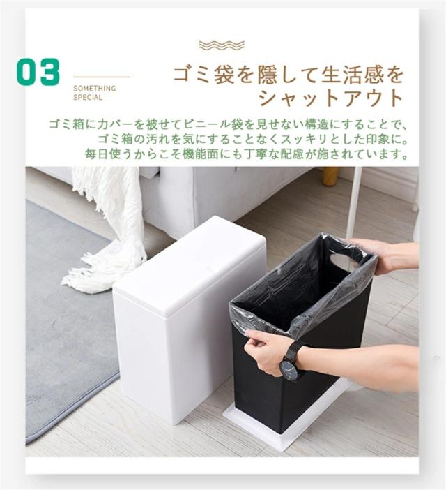 ゴミ箱に力バーを被せてビニ-ル袋を見せない構造にすることで、ゴミ箱の汚れを気にすることなくスッキリとした印象に。毎日使うからこそ機能面にも配慮が施されています。